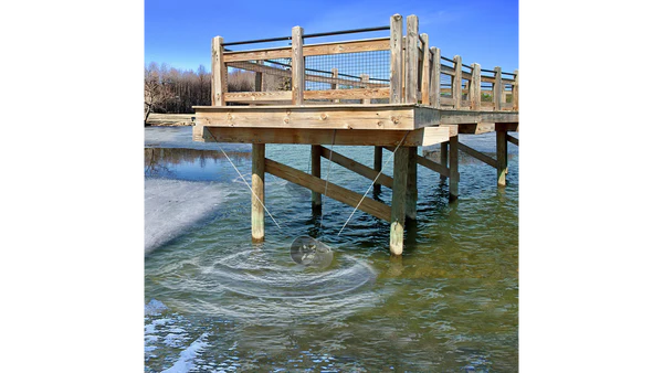 The Slinger De-Icer can be easily suspended from your boat, dock, or pilings using the included nylon ropes. It works by drawing warmer water from below the surface and circulating it continuously, preventing ice from forming — even in hard-to-reach or rapidly changing conditions. Its heavy-duty, all-weather construction performs exceptionally well in both fresh and saltwater environments.
